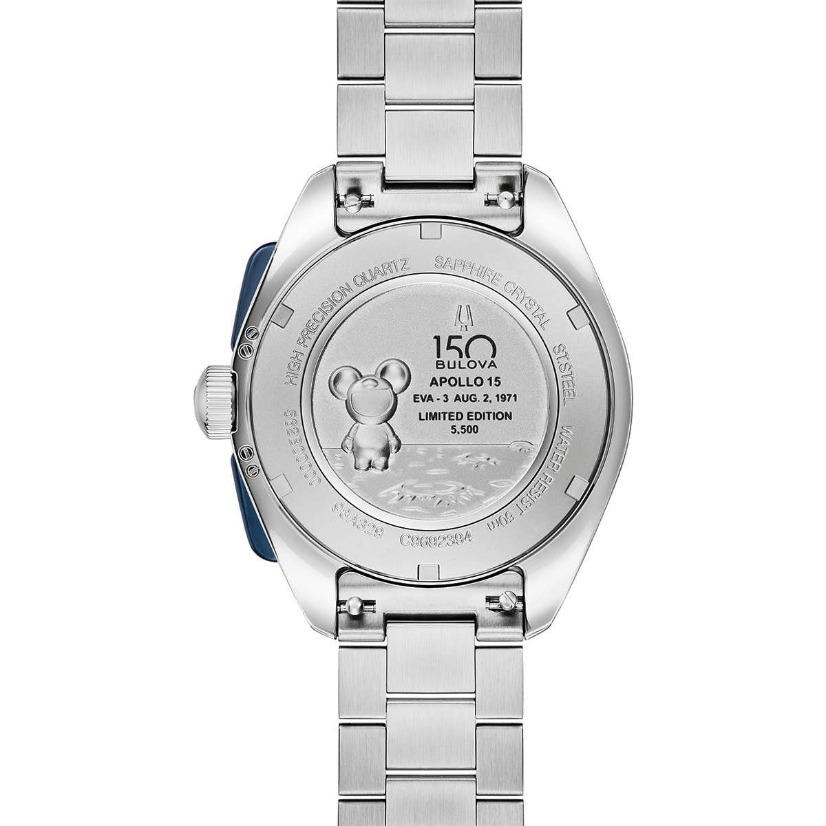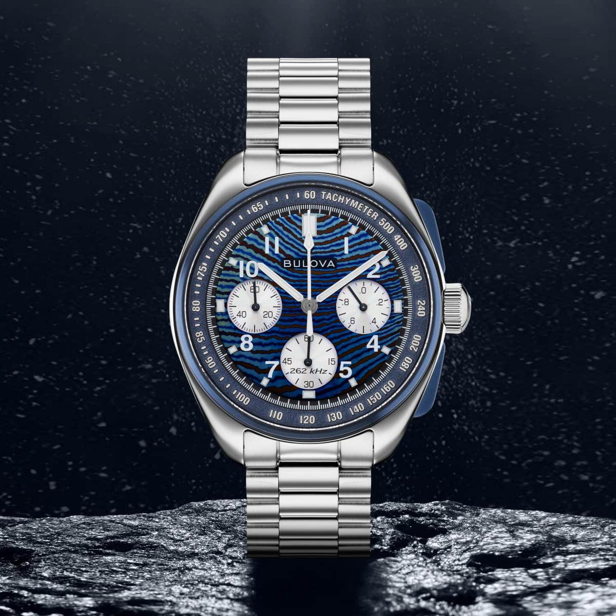 In collaboration with famed Brazilian artist Thiago Rosinhole, Bulova revisits its legendary Lunar Pilot chronograph for its 150th Anniversary. This limited-edition timepiece fuses Bulova’s precision timing with Rosinhole’s street art and pop-culture style. Beneath the flat sapphire crystal lies a striking Timascus dial, crafted from titanium folded through the Damascus process for a captivating pattern. The 43.5mm silver-tone stainless steel case features slim blue chronograph pushers, a crown with the Bulova tuning fork, and a blue tachymeter ring surrounding silver registers with luminous hands and markers. Powered by Bulova’s proprietary high-precision quartz movement (262 kHz) with sweeping chronograph hand and 1/20th-second timing, it’s paired with a matching 3-link bracelet. Each individually numbered case back is embossed with Rosinhole’s Budii figure. Presented in special packaging with a storybook and a signature 6-inch Budii figurine, this modern reinterpretation of a historic timepiece is limited to 5,500 pieces worldwide.