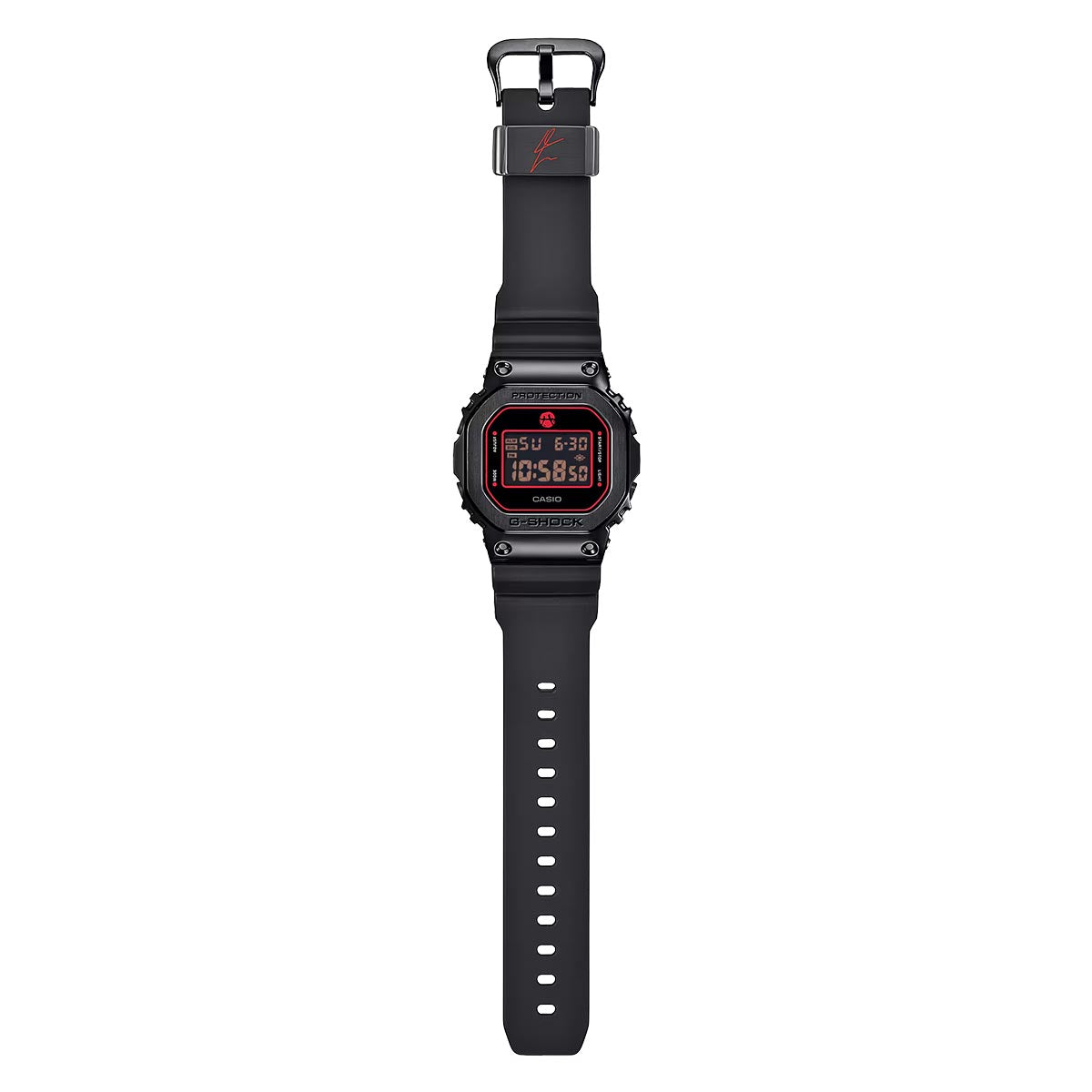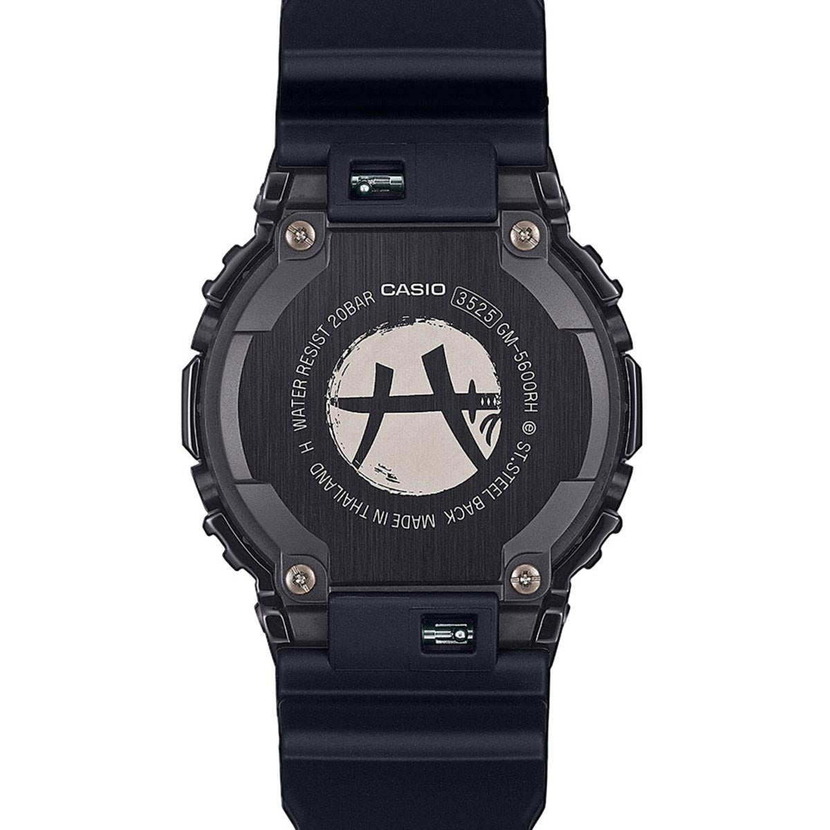 G-SHOCK and Rui Hachimura reunite for his fifth signature timepiece, a bold special edition based on the GM-5600 with its distinctive metal bezel. Focused black with vivid red accents — G-SHOCK’s signature colors — reflect Hachimura’s power and intensity. His “Black Samurai” logo, blending the kanji 八 (hachi) with a Japanese sword to form an “H,” appears on the dial and case back, while his signature is engraved on the band loop. Ion-plated metal parts add a refined finish, and bio-based resin in the band helps reduce environmental impact. Presented in striking black-and-red packaging.