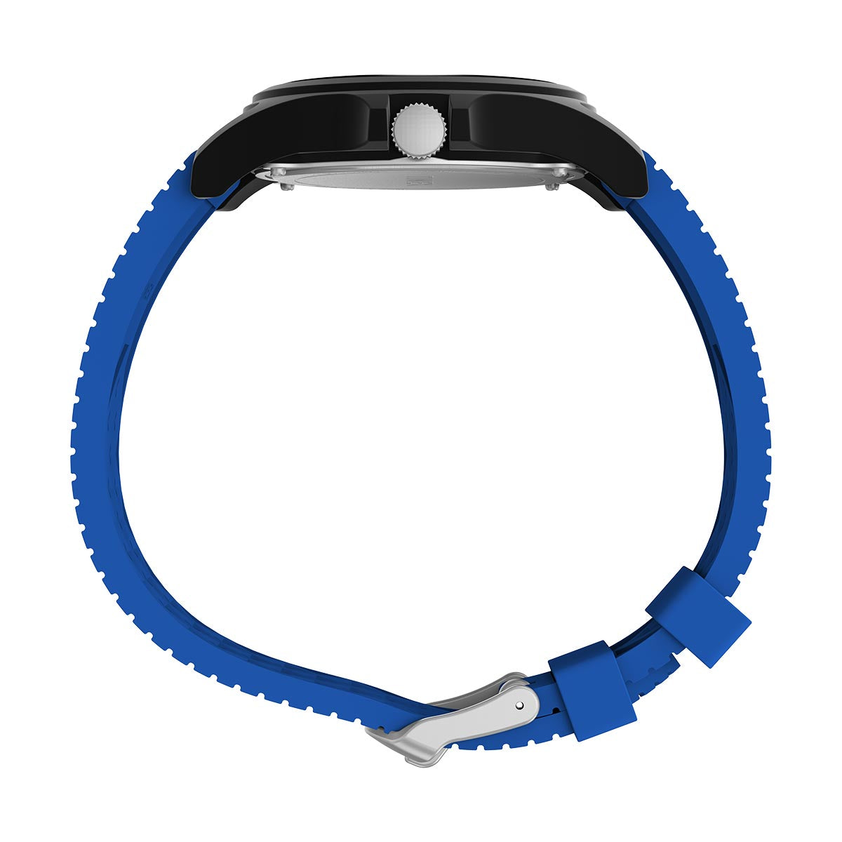 This Timex watch celebrates humanity's journey to the farthest reaches of space. The crisp white dial brings the mission’s identity front and centre, with a red NASA logotype and the Artemis symbol at 12 o’clock. Finished with a lightweight black resin case and a flexible silicone strap in an energizing blue, it channels both utility and uplift. Other details include bold Arabic numeral markers, an arrow second hand, luminant hour and minute hands, and a sturdy crown protector.